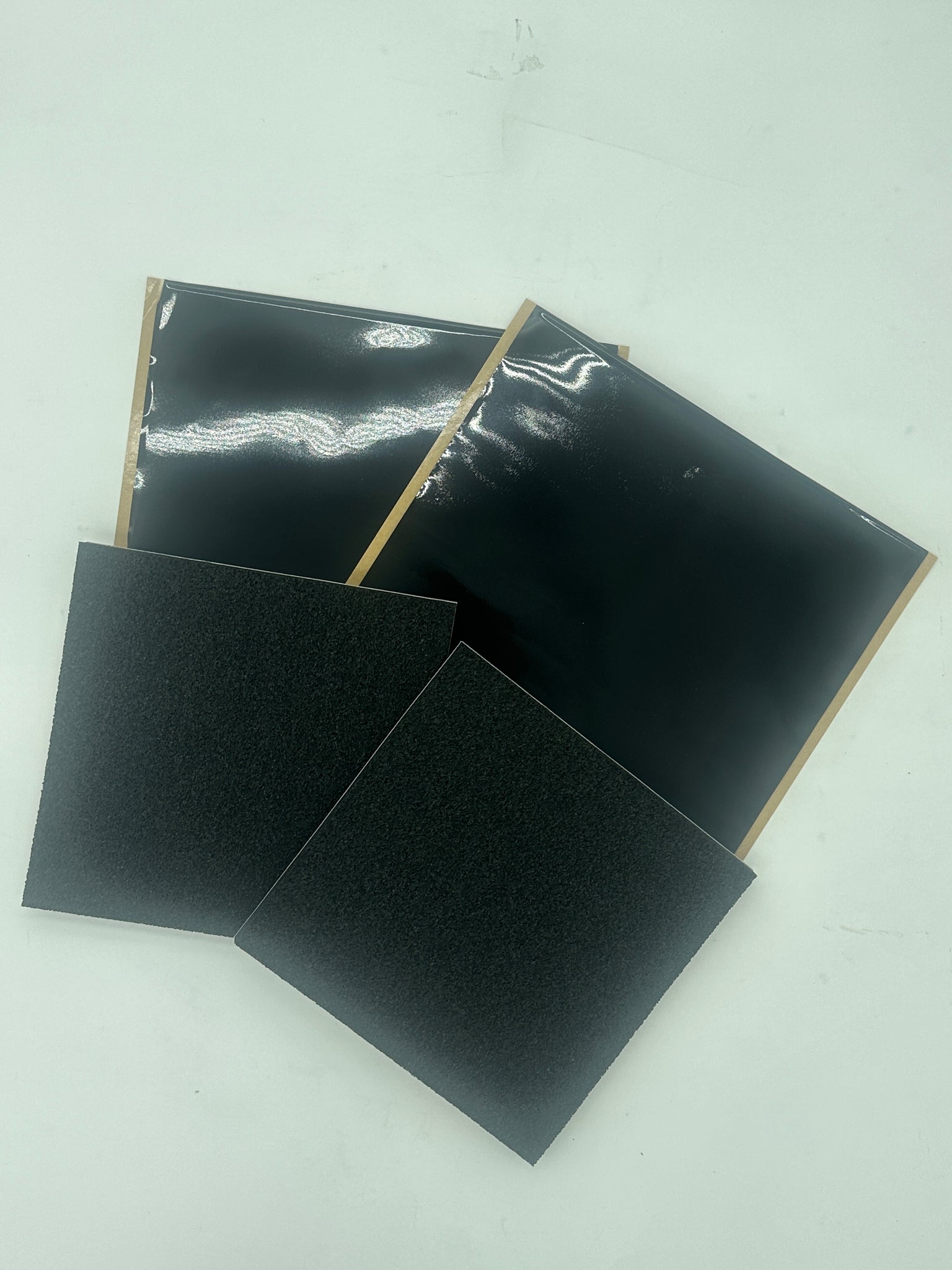 HushMat Ultra’s proprietary formula is the adhesive. HushMat’s formulation requires no glues or film adhesives like other brands. HushMat Ultra has passed over 25 years of rigorous in-vehicle validation of performance in every climate on the globe. If you slice the Ultra compound you will see that both sides of the slice are tacky. This is one of the competitive advantages of HushMat.