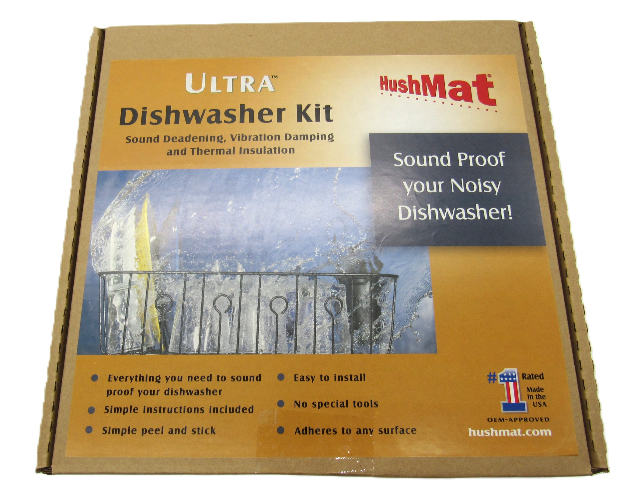 HushMat reduces the irritating noise generated from your dishwasher. It is often difficult to hold a phone conversation next to your dishwasher. Many dishwashers are next to rooms where you have televisions. The noise from the dishwasher is so high you have to turn up the volume on the TV just to enjoy your show. HushMat is the solution. HushMat is an easy to install, self-adhesive material that easily bonds to the outside of the dishwasher tub. HushMat makes even an entry level dishwasher as quiet as the brands that cost over a thousand dollars. HushMat has written easy to follow installation instructions for your do-it-yourself installation. No glues, no messy clean up. Installation takes 15 to 20 minutes from start to finish